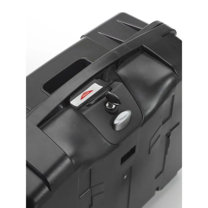 Bagageboksen er fremstillet i robust og vejrbestandigt materiale, som beskytter indholdet mod regn, snavs og stænk. Den integrerede lås sikrer, at indholdet opbevares forsvarligt og beskyttet mod uautoriseret adgang.