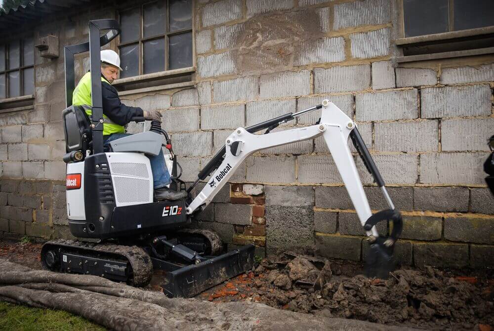 Bobcat E10 minigraver har en egenvægt på 1176 kg og har en gravedybde 1820 mm. Den har en bredde på 710 mm som kan sammenlignes med en 800 kg’s maskine. Båndene kan udskydes til 1100 mm for større stabilitet. Maskinen har joystickstyring og ovenliggende cylindre så de er beskyttet. Bobcat E10 minigraver er den bedst sælgende gravemaskine i Danmark siden lanceringen i 2008. Maskinen er monteret med dobbelvirkende hydrauliske udtag og demolition kit.