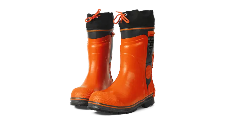 Håndbygget støvle med skæreindlæg. Ekstra forstærkning omkring øverste del og sålen, med tåkap.