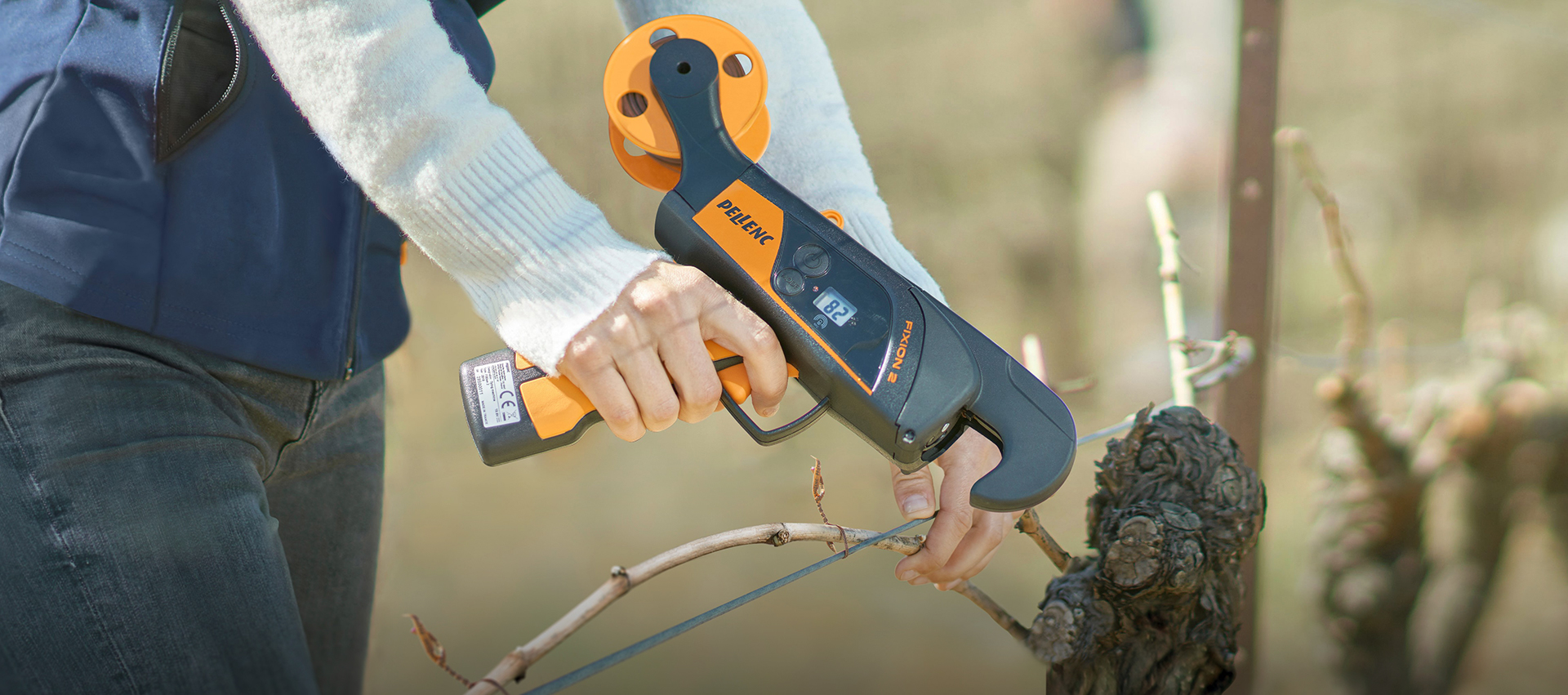 PELLENC Fixion 2-bindemaskine er let og nem at håndtere og giver tidsbesparelser på op til 50% sammenlignet med håndbinding. Og med tilstrækkelig batterilevetid til en hel dags arbejde og mere forøges din vinbindingsproduktivitet ti gange.